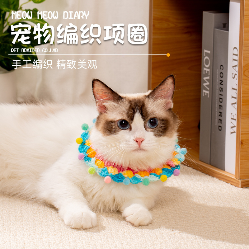 Kerah Hewan Peliharaan Kerah Kucing Benang Wol Buatan Tangan Rajutan Celemek Lucu Leher Bisa Disesuaikan Dasi Kuping Kalung Kucing Kecil