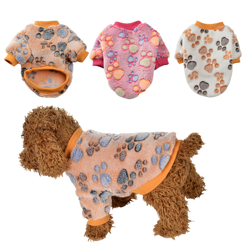 Pakaian anjing peliharaan sweter bulu domba karang mewah hangat musim gugur dan musim dingin pakaian kaki dua pakaian anjing kecil dan sedang cetak kaki