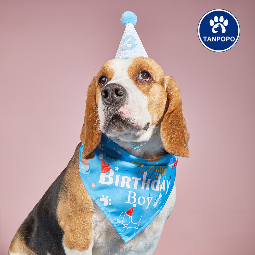 Pabrik Penjualan Langsung Lintas Batas Lintas Batas Kartun Hewan Peliharaan Ulang Tahun Handuk Segitiga Anjing Aksesoris Topi Ulang Tahun Hewan Peliharaan