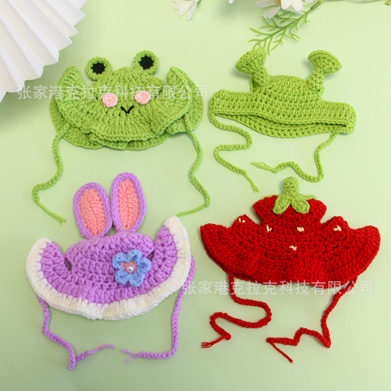 Sarung Kepala Hewan Peliharaan Kait Tangan Rajutan Topi Tenun Kucing Hiasan Kepala Alat Peraga Berbentuk Anjing Lucu
