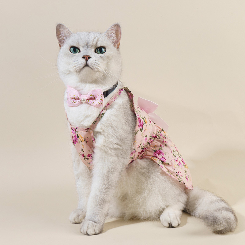 Rok hewan peliharaan bunga pastoral dengan hiasan kepala rok anjing kucing kombinasi bunga pakaian Amazon grosir