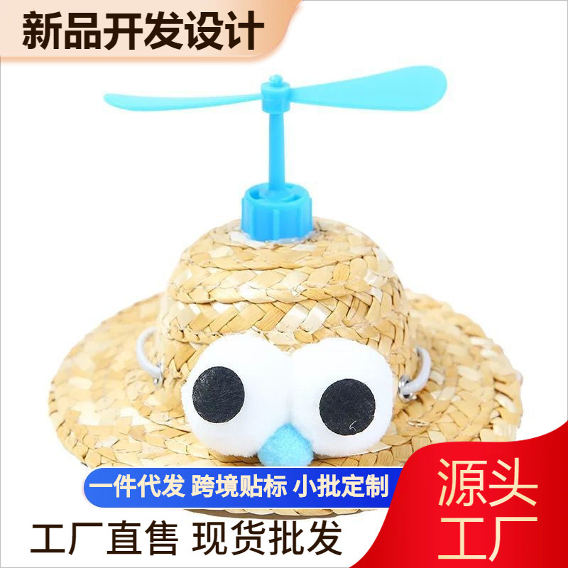 Topi jerami hewan peliharaan, hiasan kepala kucing beruang Teddy, capung transformasi lucu Petani tahan matahari menjual foto lucu