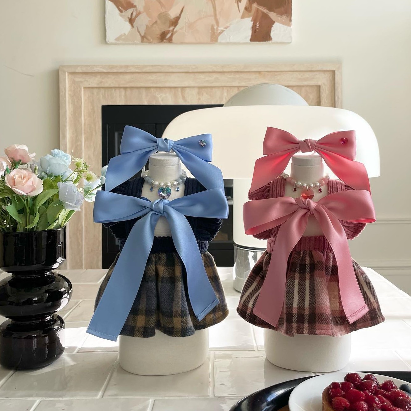 Tersedia gaya INS Korea Selatan musim gugur dan musim dingin gaya channel rok suspender pita tenun tebal pakaian anjing kucing peliharaan