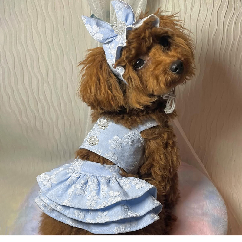Pakaian anjing baru gesper terbuka gaun putri busur musim semi dan musim panas kucing lintas batas Amazon dalam stok pabrik langsung grosir