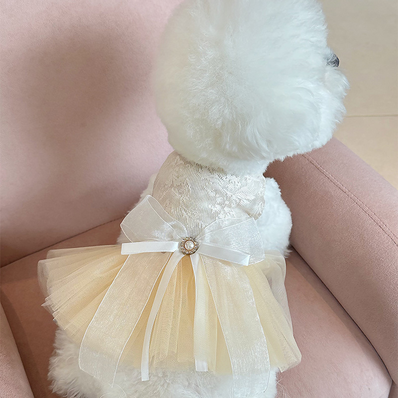 Pakaian anjing Musim Semi dan musim panas baru pakaian kucing gaun renda persediaan hewan peliharaan Teddy rok hewan peliharaan ikatan simpul