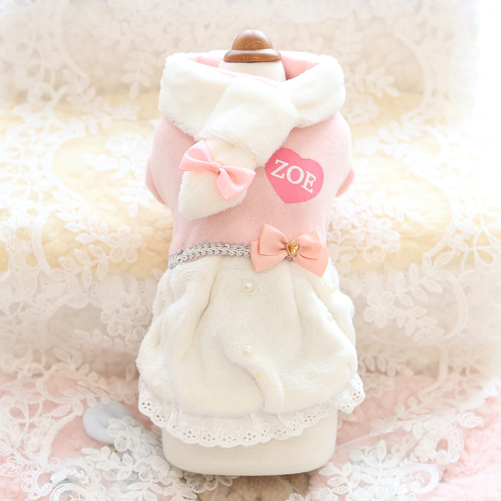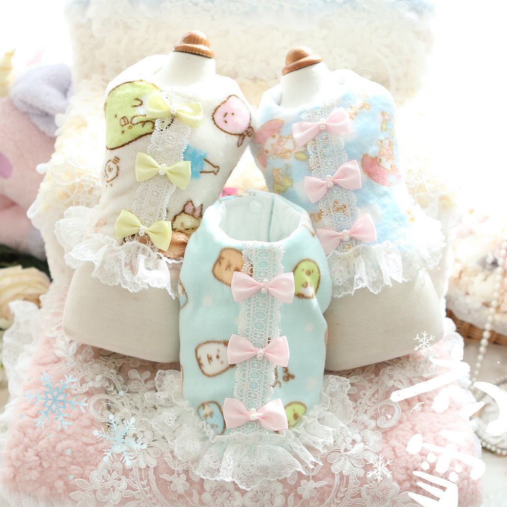 Baju anjing lapisan bawah tebal, kemeja pita renda pakaian rumah musim gugur dan musim dingin Bixiong lipat baru