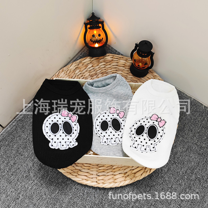CQ873 rompi patch tengkorak bintik hitam dan putih [pakaian hewan peliharaan pakaian anjing pakaian musim semi dan musim panas]