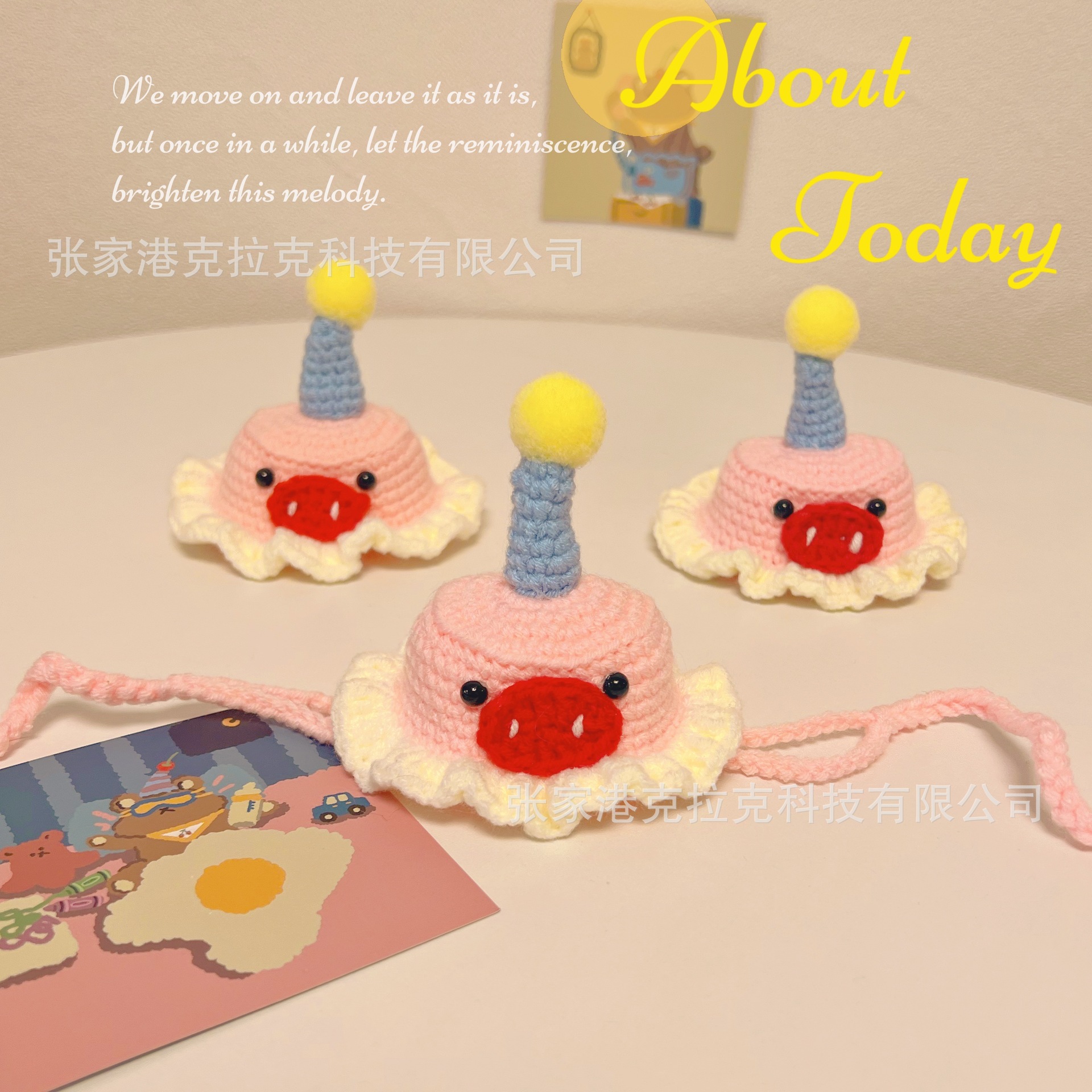 Topi dekoratif hewan peliharaan, topi wol kepala Babi festival ulang tahun anjing, hiasan kepala lucu rajut tangan kucing