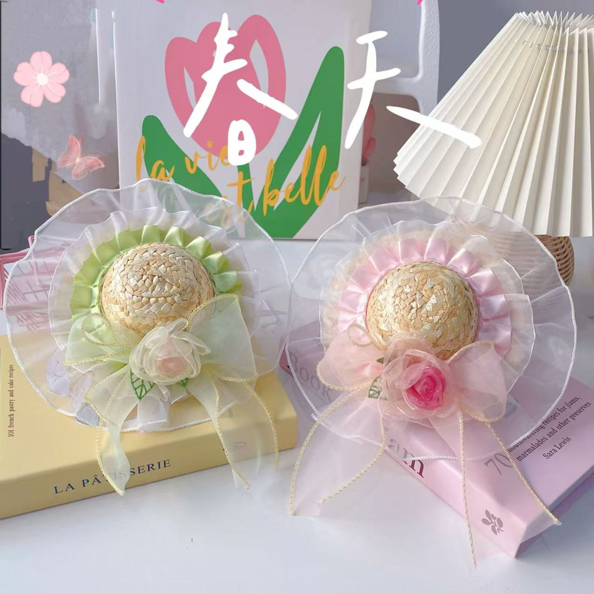 Topi Hewan Peliharaan Musim Semi dan Musim Panas Model Baru Topi Jerami Desain Renda Bunga Manis Kucing Topi Pelindung Matahari Anjing Kucing Dekorasi Anjing