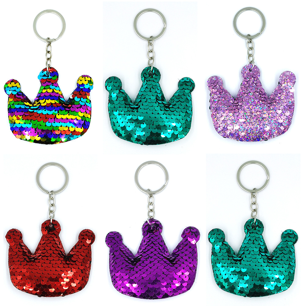 Cross-border gantungan kunci berkilau, gantungan kunci payet mahkota, aksesori pakaian ornamen liontin mobil