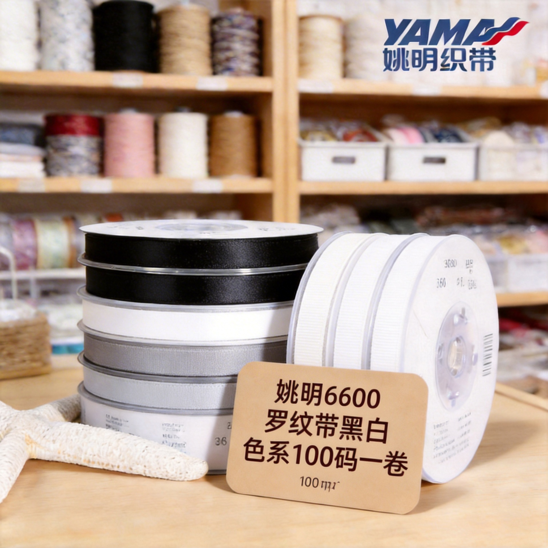 Yao Ming pita warna solid poliester pita pakaian aksesori sabuk benang hitam putih 6mm 100 yard/gulungan