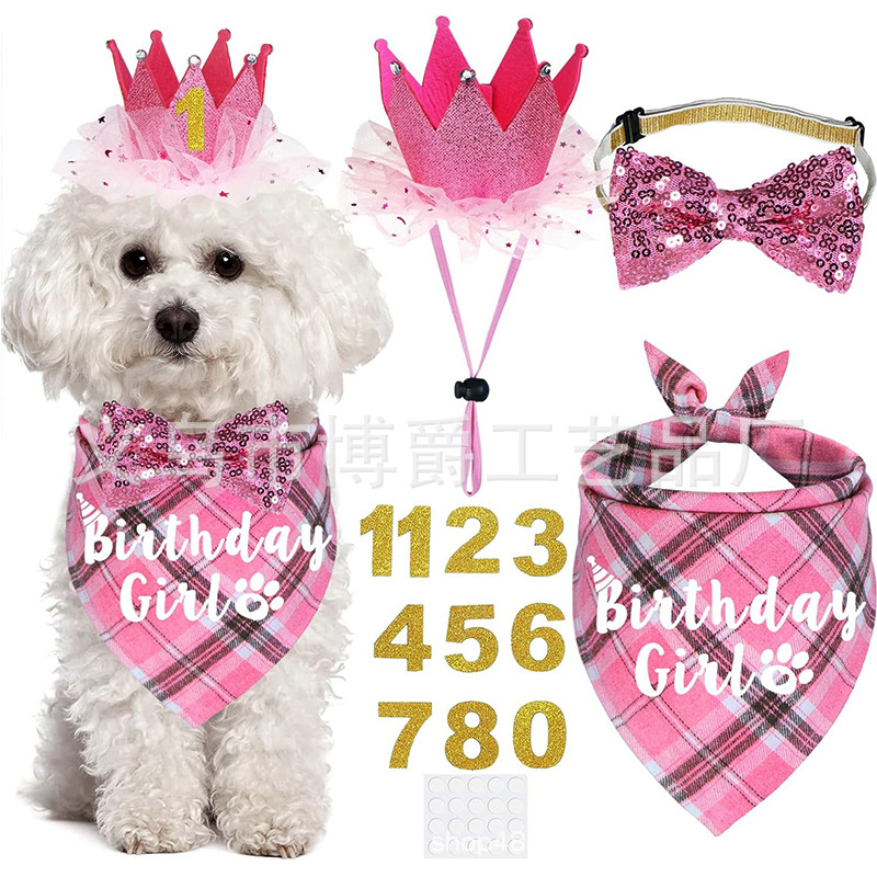 Setelan handuk air liur ulang tahun hewan peliharaan syal segitiga anjing topi mahkota dasi kupu-kupu setelan nomor alat peraga pesta hewan peliharaan