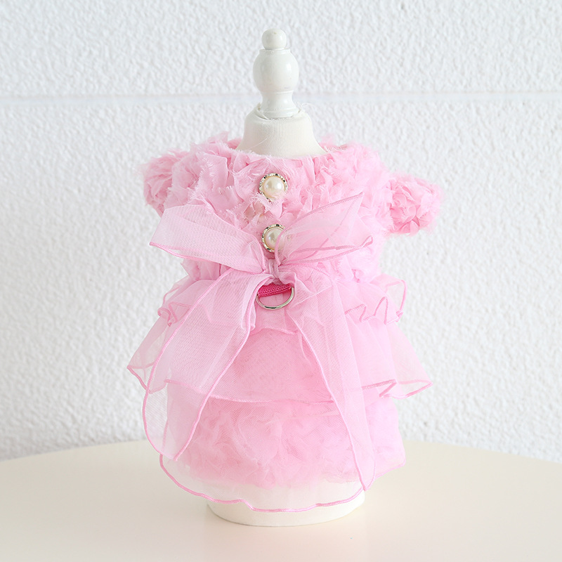 Gaun pita tiga dimensi untuk anak anjing, pakaian anjing piaraan tipis musim semi dan panas, rok gaya putri kucing, baju anak anjing tiga dimensi