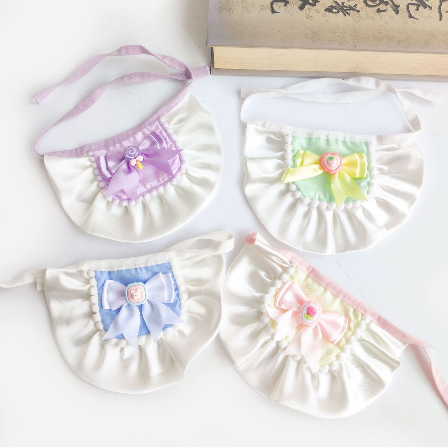 Handuk air liur hewan peliharaan lolipop manis gaya Jepang aksesoris boneka celemek anjing syal hewan peliharaan renda
