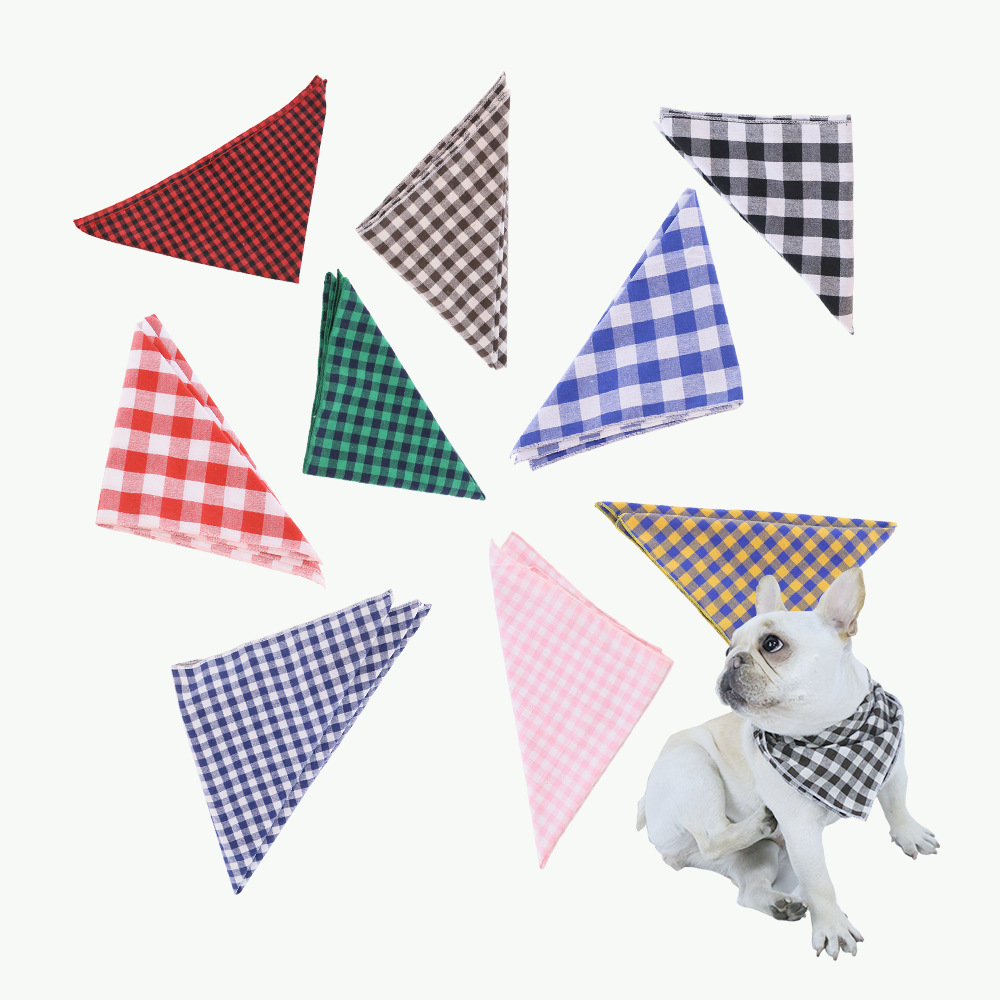 Musim semi dan musim panas bib hewan peliharaan baru bib anjing kotak-kotak handuk segitiga multiwarna pabrik grosir