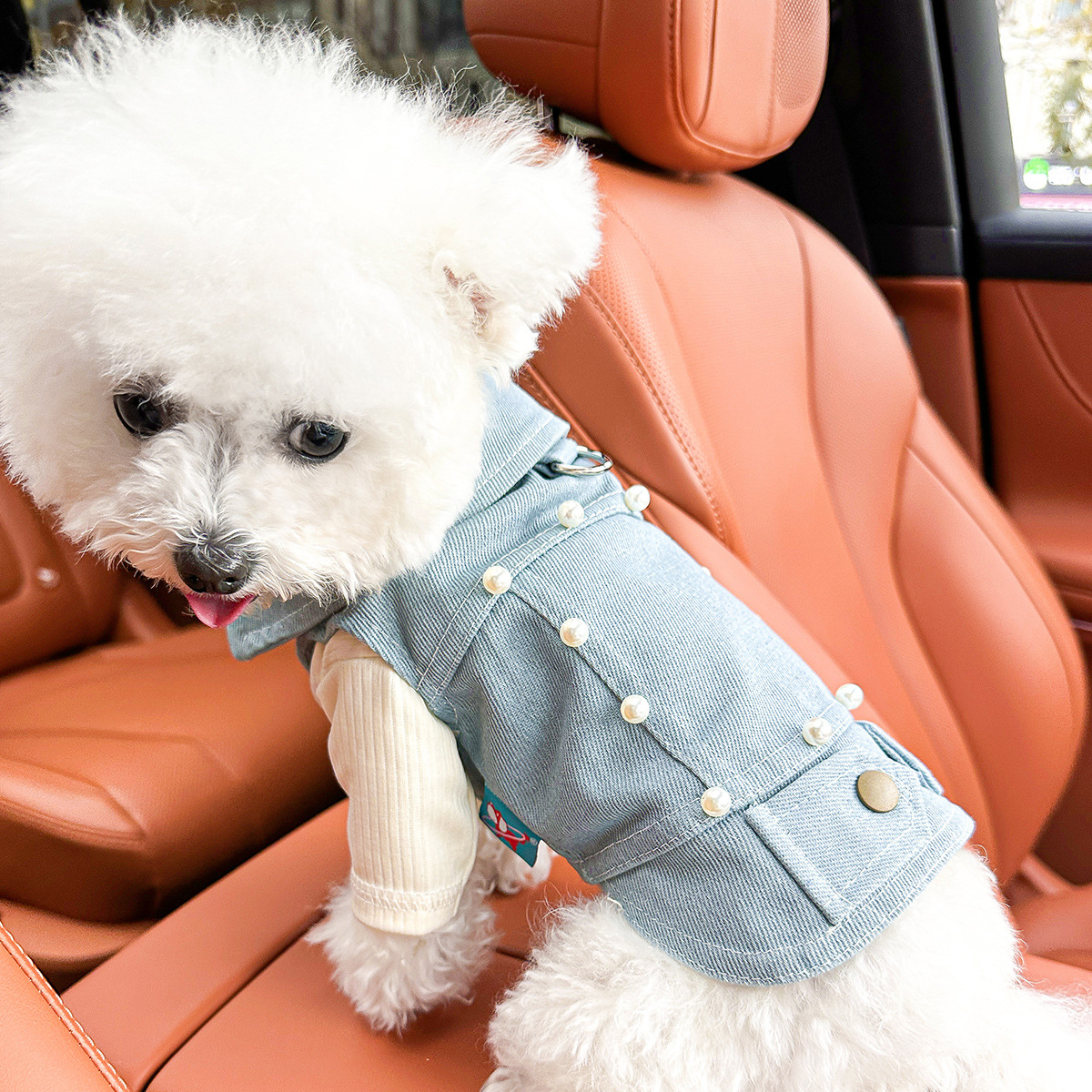 Barang Tersedia Pakaian Kucing Anak Anjing Hewan Peliharaan Model Border Lintas Batas Sumber Pabrik Kerah Mutiara Pakaian Denim Baju Dalaman Kombinasi