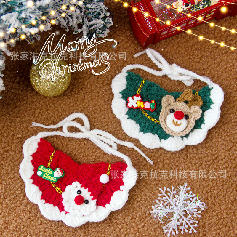 Kucing anjing Natal buatan tangan bib bib bib lucu elk bib manusia salju aksesori foto anjing kecil