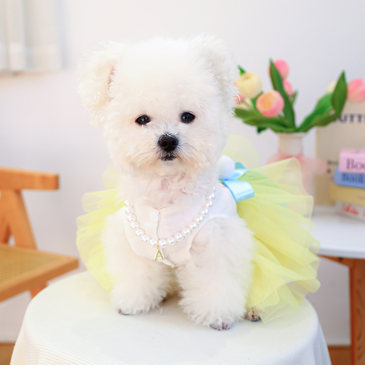 Musim Semi dan Musim Panas 2025 Produk Baru Anjing Hewan Peliharaan Anjing Kecil Pakaian Anak Anjing Kelinci Paskah Rok Benang Huruf A Kalung Mutiara