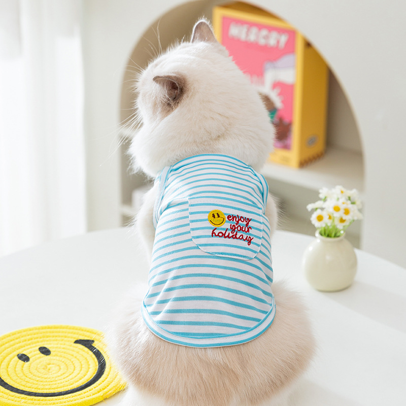 Pakaian Kucing Hewan Peliharaan Musim Panas Model Musim Semi Musim Panas Tank-top Bernapas Model Tipis Anti-drop Wol