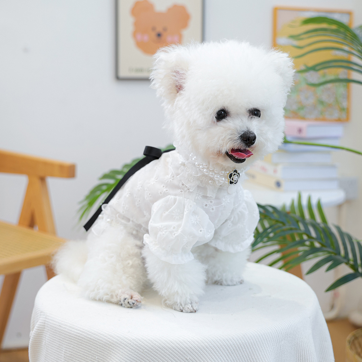 Barang Tersedia Model Border Lintas Batas Hewan Peliharaan Anak Anjing Kucing Pakaian Pabrik Penjualan Langsung Perancis Kemeja Berongga Kombinasi Kalung Mutiara