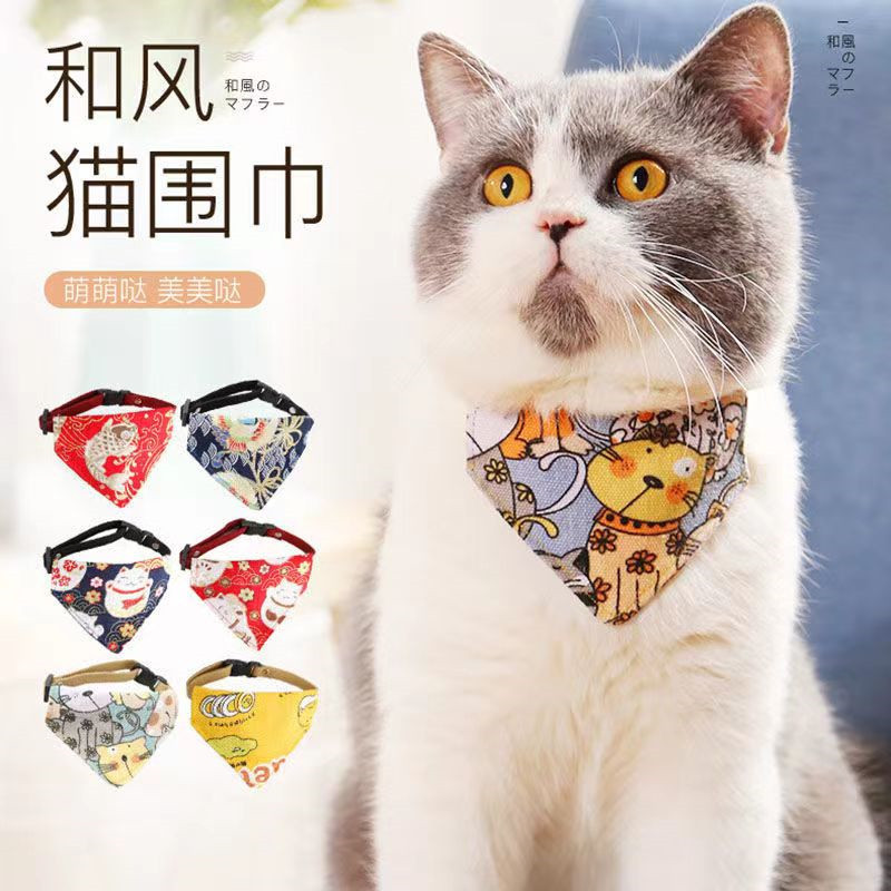 Syal air liur segitiga kucing peliharaan Amazon Cross-border katun syal handuk air liur kucing ditarik meriah