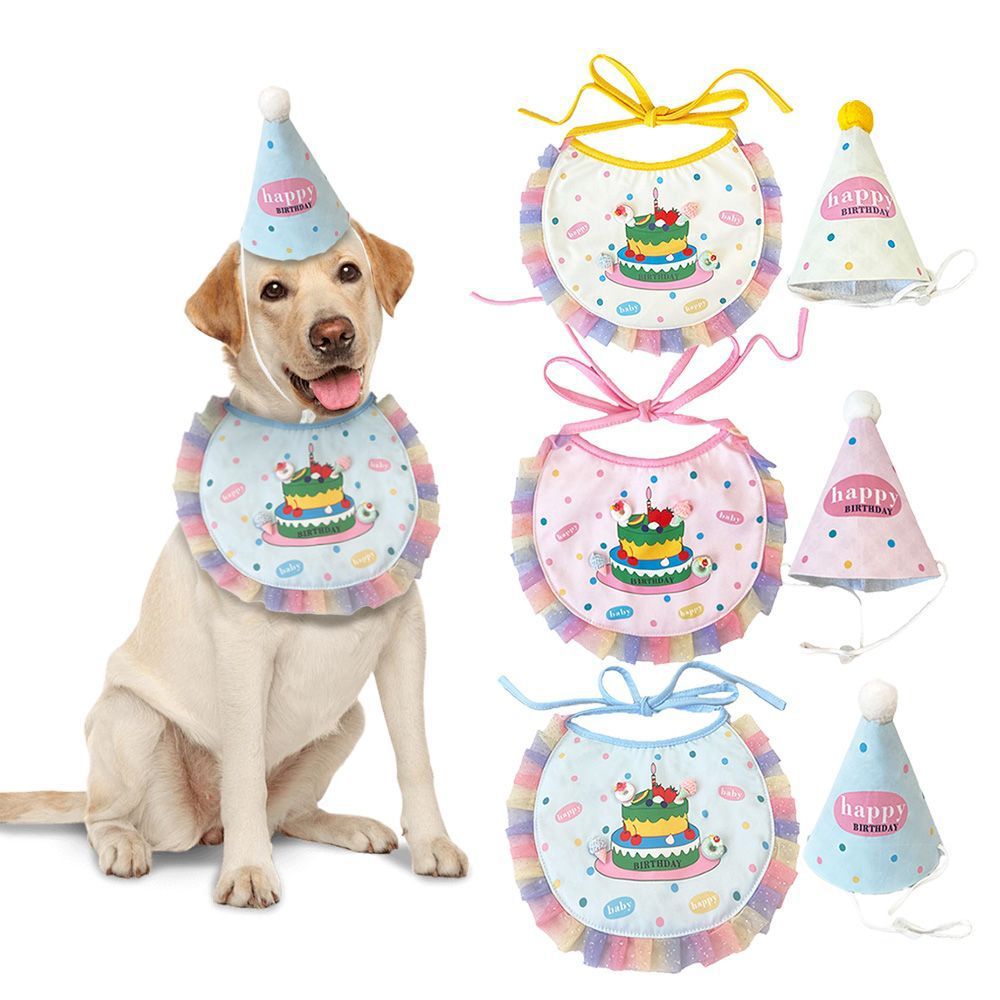 Syal Air Liur Ulang Tahun Gaya Ins Hewan Peliharaan Syal Bib Kucing Topi Kucing Anjing Perlengkapan Dekorasi Anjing Lintas Batas Grosir