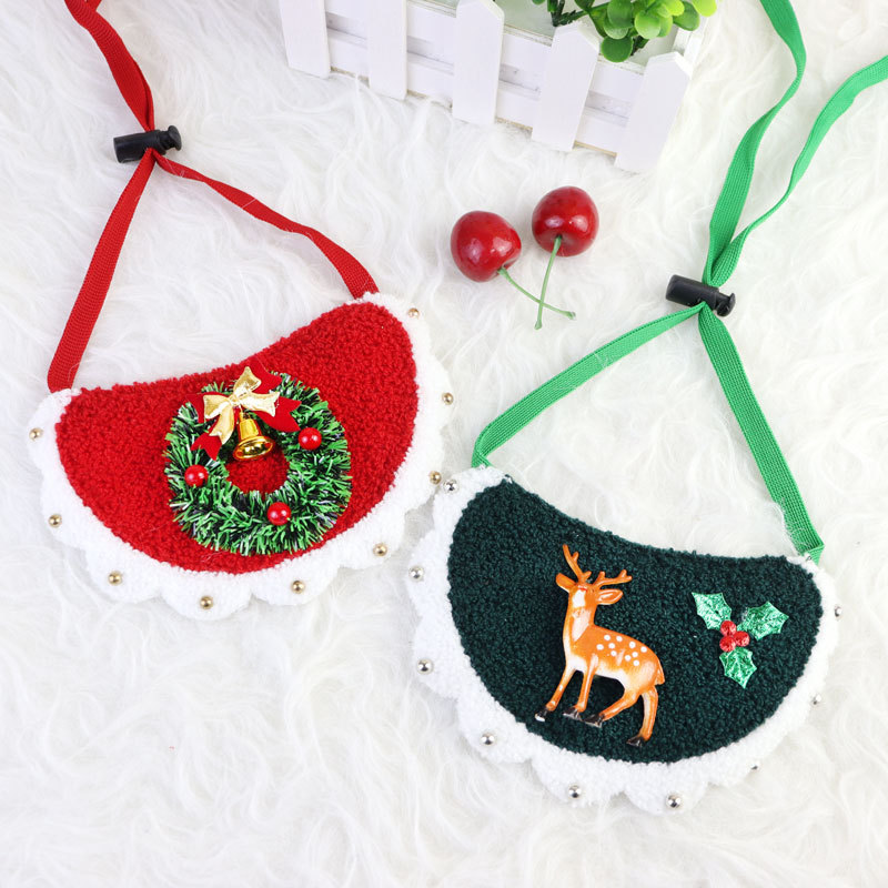 Syal leher anjing, syal segitiga, celemek hewan peliharaan kecil Teddy, handuk air liur kucing berenda, syal leher, pesta liburan.