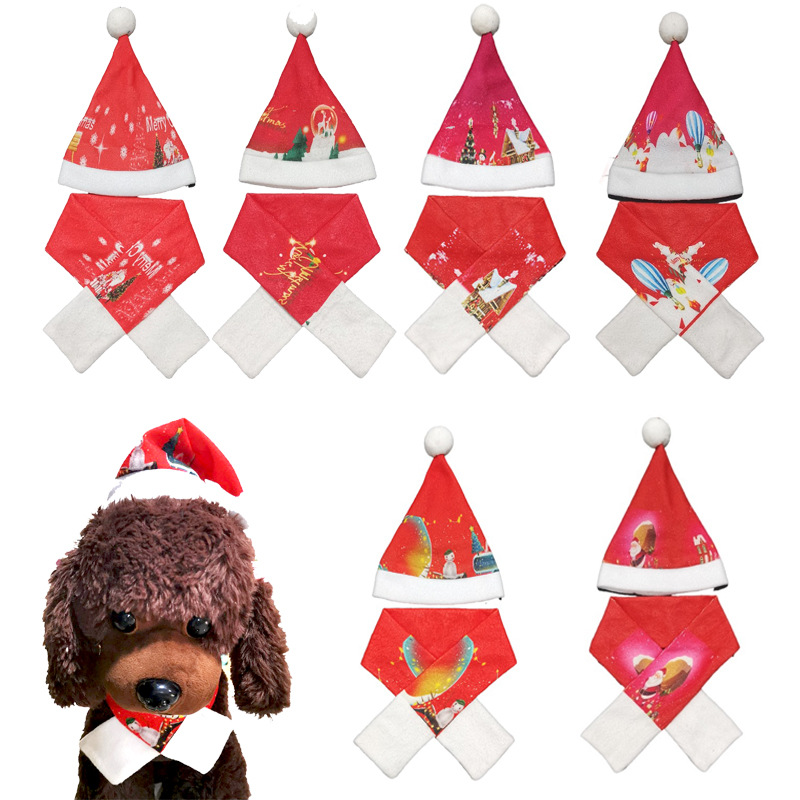 Topi syal hewan peliharaan Natal, aksesori handuk air liur kucing lucu baru, suasana liburan, syal anjing
