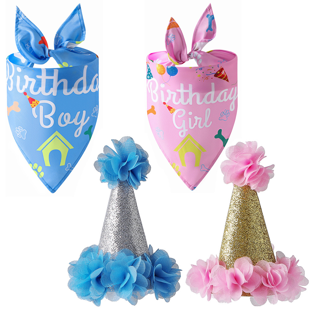 Pet ins syal bib ulang tahun, topi anjing kucing dekorasi perlengkapan lintas batas grosir