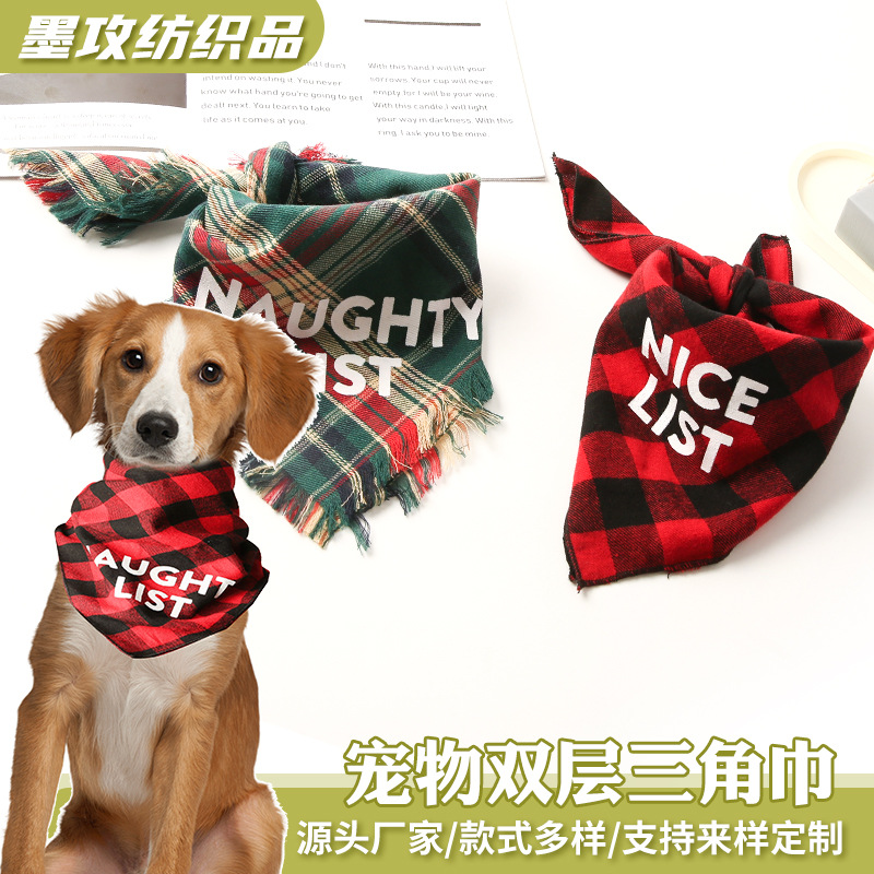 Handuk segitiga katun bib hewan peliharaan syal kucing gaya Universitas kotak-kotak cetak dua lapisan handuk segitiga kustomisasi