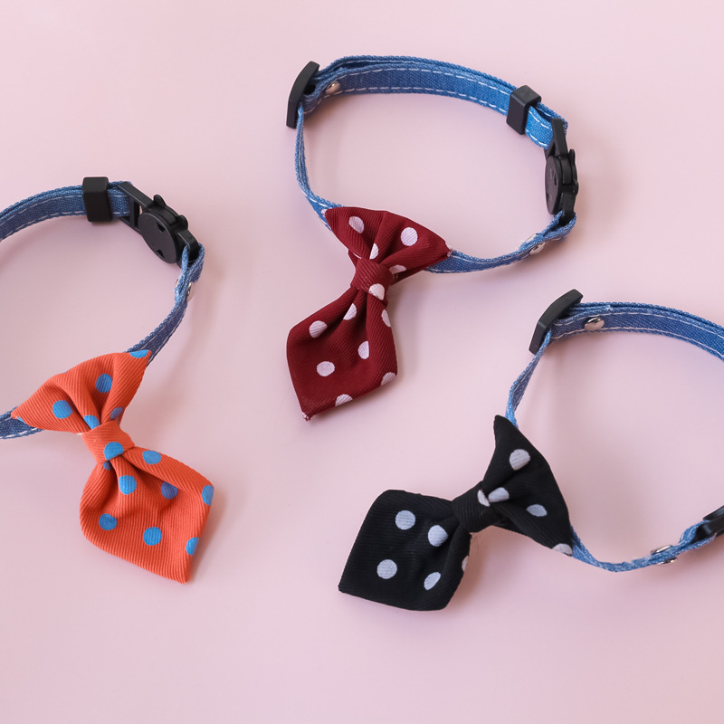 Dasi Hewan Peliharaan Kerah Dasi Kucing Anjing Kancing Keamanan Lonceng Anjing Pria Gaya Inggris Pernikahan Dot Polkadot Dasi Dasi Denim