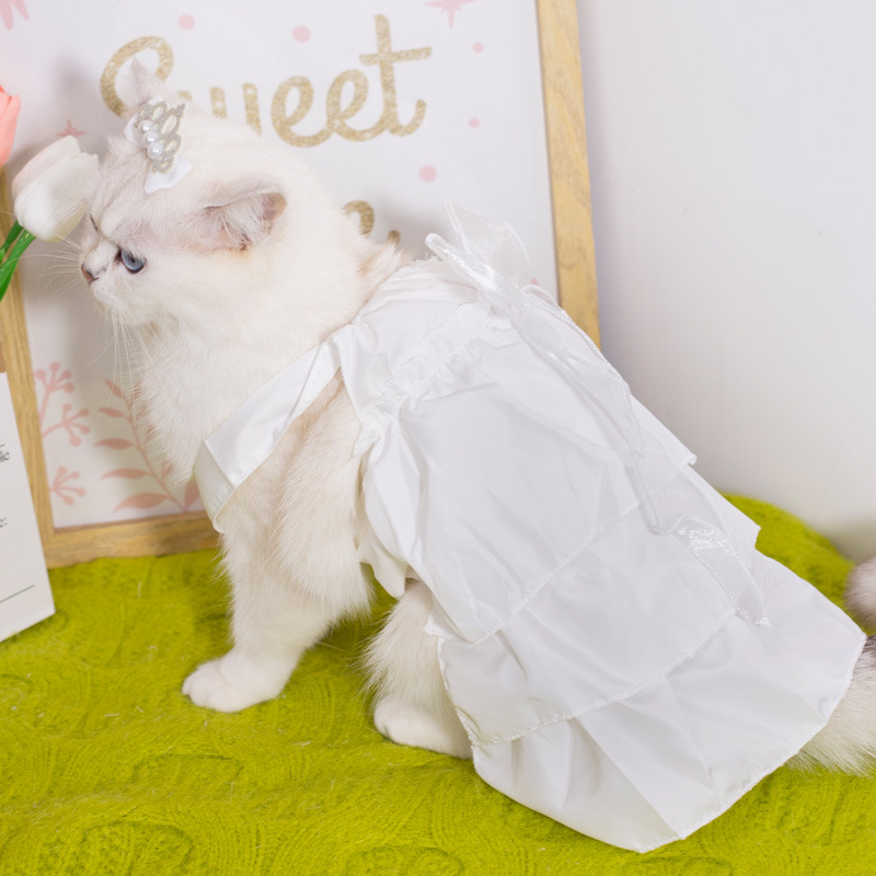 Gaun pernikahan anjing peliharaan baru 2024 gaun pernikahan rok kucing + hiasan kepala bunga + kalung setelan pabrik langsung dalam stok