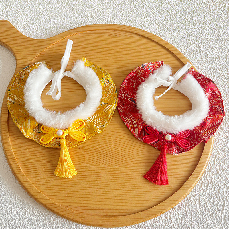 新中式宠物新年配饰猫咪过年围脖狗狗春节围巾毛领披肩喜庆流苏