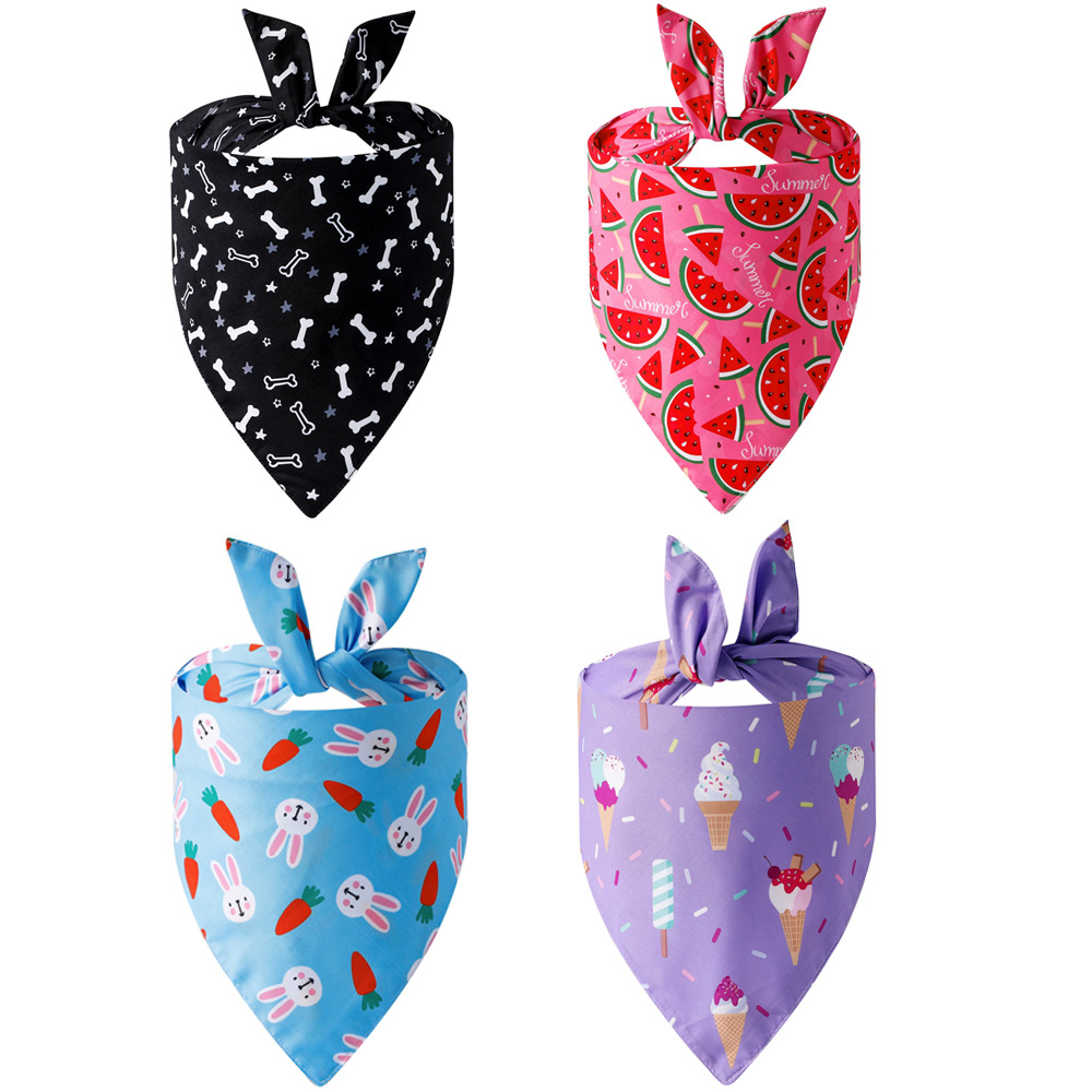 Handuk Segitiga Hewan Peliharaan Dua Sisi Handuk Air Mulut Anjing Dua Sisi Katun Murni Model Kecil dan Menengah Syal Celemek Kucing Bersablon Buah