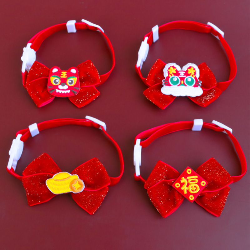 Cross-Border Amazon Hewan Peliharaan Kucing Anjing Kalung Lucu Suasana Festival Tahun Baru Dasi Kupu-Kupu Tahun Baru Dapat Disesuaikan Keamanan