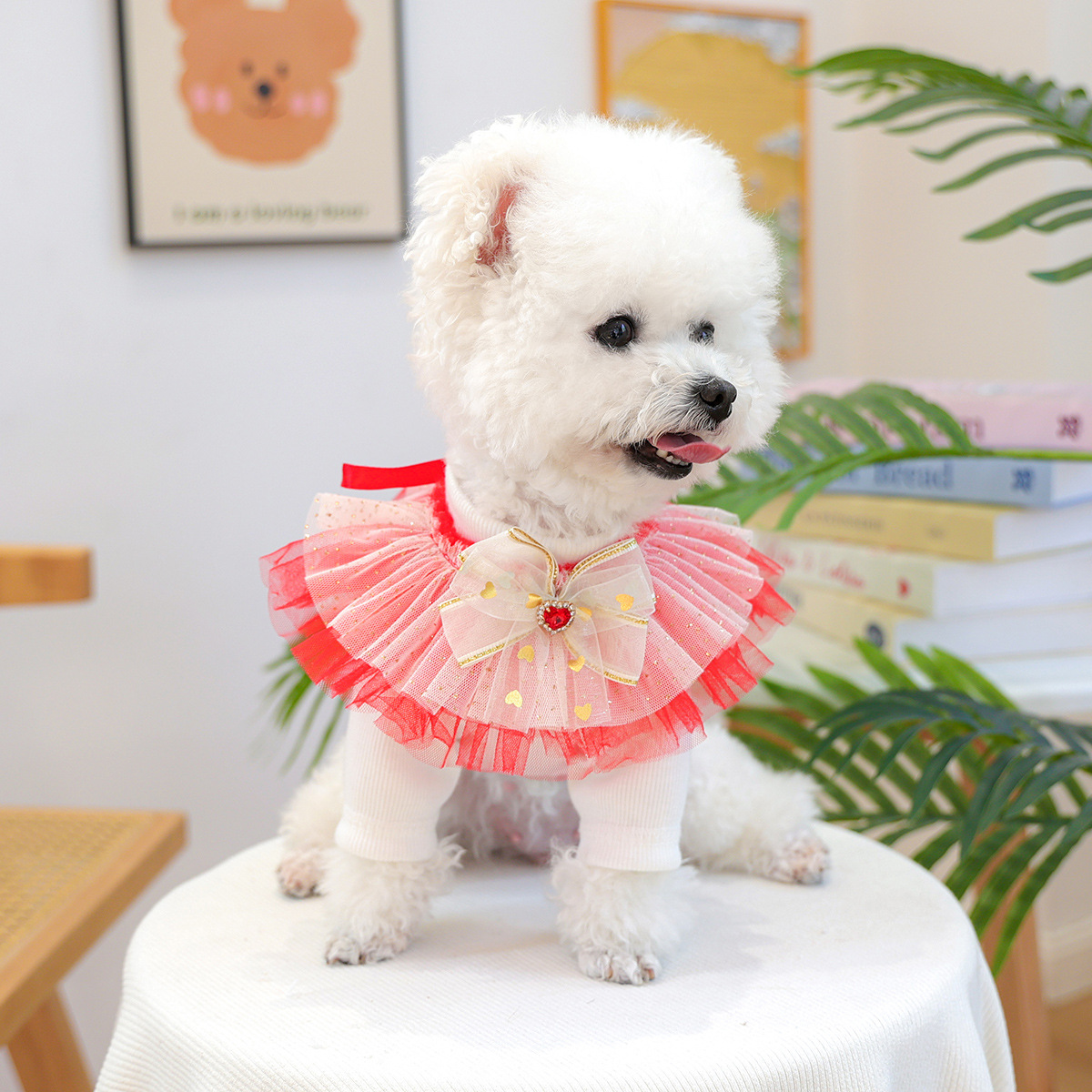 2025 Produk Baru Musim Semi dan Musim Panas Grosir Hewan Peliharaan Kucing Anjing Kecil Aksesoris Pakaian Anak Anjing Ruby Bib Kasa Emas