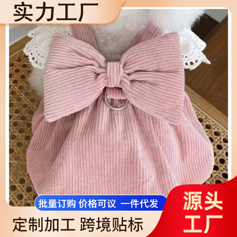 Hewan peliharaan korduroi musim semi dan musim gugur rok labu gesper traksi renda kucing beruang Teddy