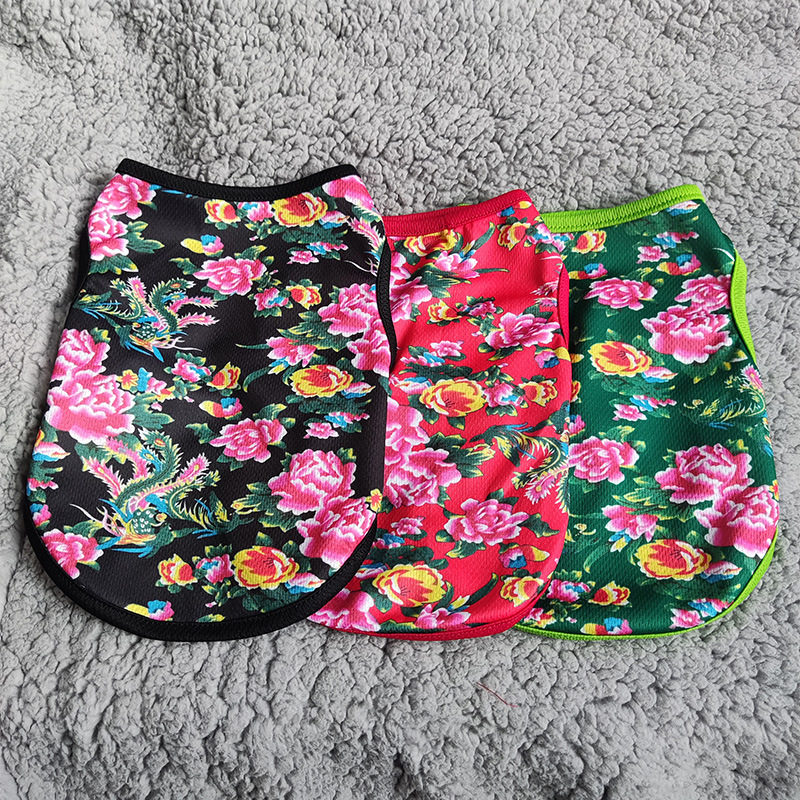 Rompi bunga hewan peliharaan, tipis musim panas bernapas anti-lengket bulu beruang teddy pakaian anjing keren pabrik penjualan langsung