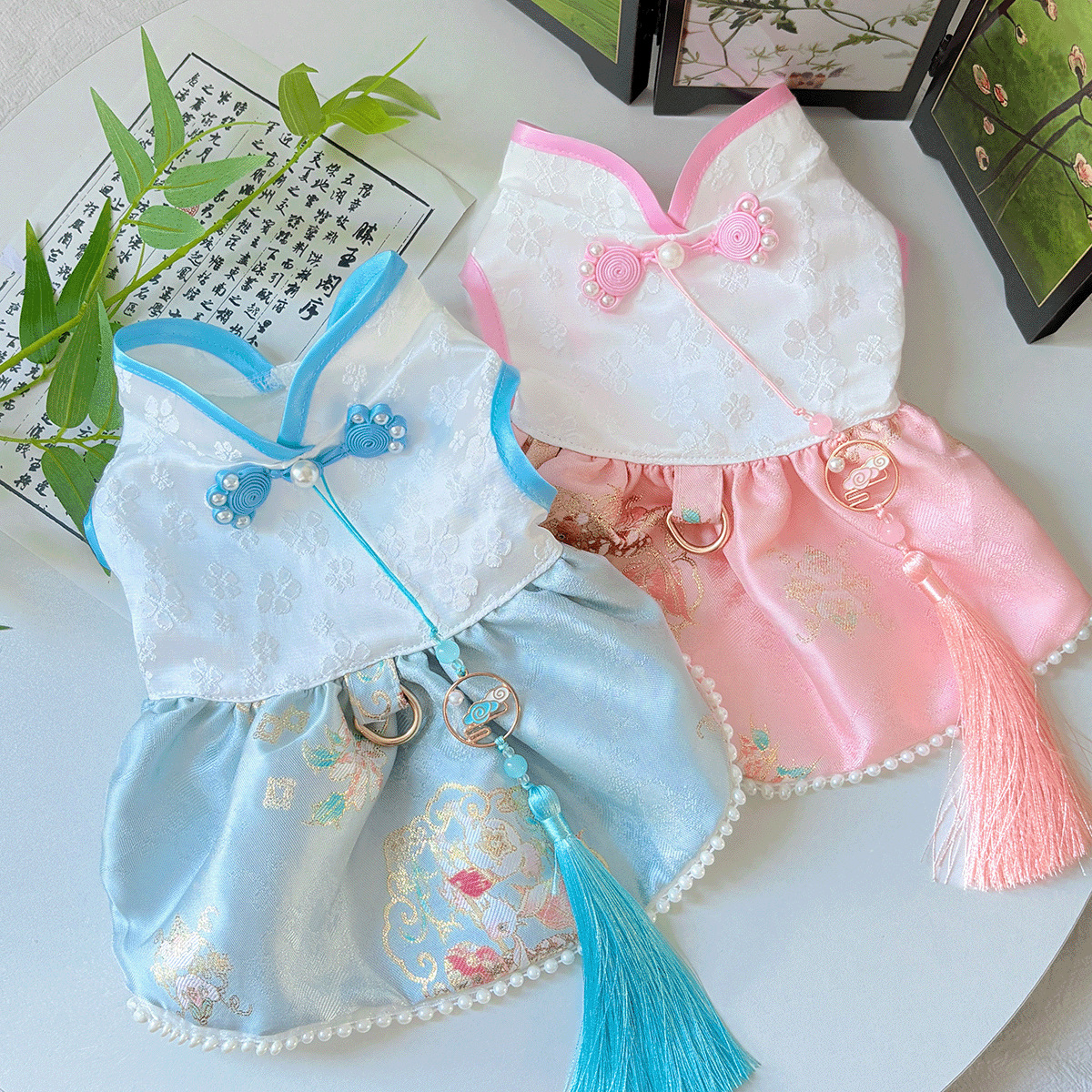 狗狗衣服蝴蝶流苏唐装连衣裙猫咪衣服国风中小型犬适用新中式服装