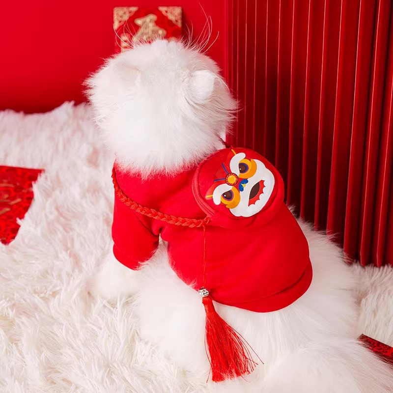 Musim gugur dan musim dingin kucing Tahun Baru lion dance tiga dimensi ransel Tahun Baru sweater Anjing Tahun Baru meriah Beruntung hewan peliharaan kucing pakaian