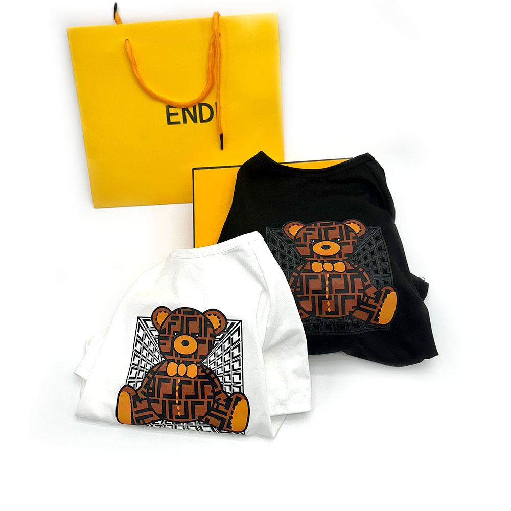 Merek fashion mewah musim panas F pakaian anjing lengan pendek katun beruang pakaian hewan peliharaan tipis chenari Teddy French bucket