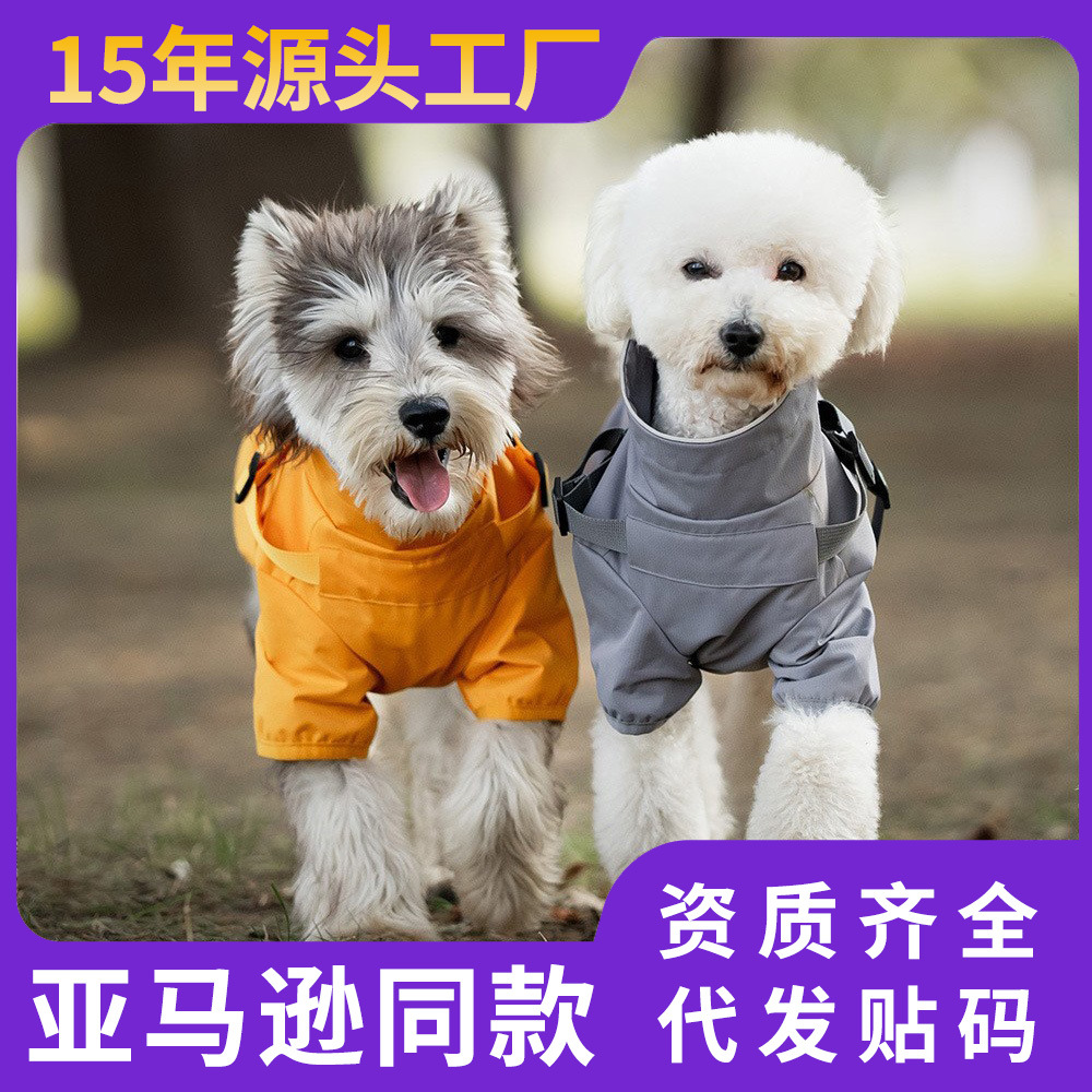 Wei Beier jas hujan dada dan belakang anjing peliharaan, dua kaki tahan air Teddy sedang dan anjing kecil traksi pakaian hewan peliharaan lintas batas