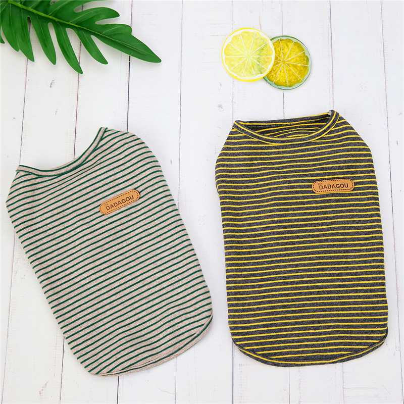Pakaian hewan peliharaan baru musim semi dan musim panas rompi bergaris trendi Chihuahua VIP beruang teddy