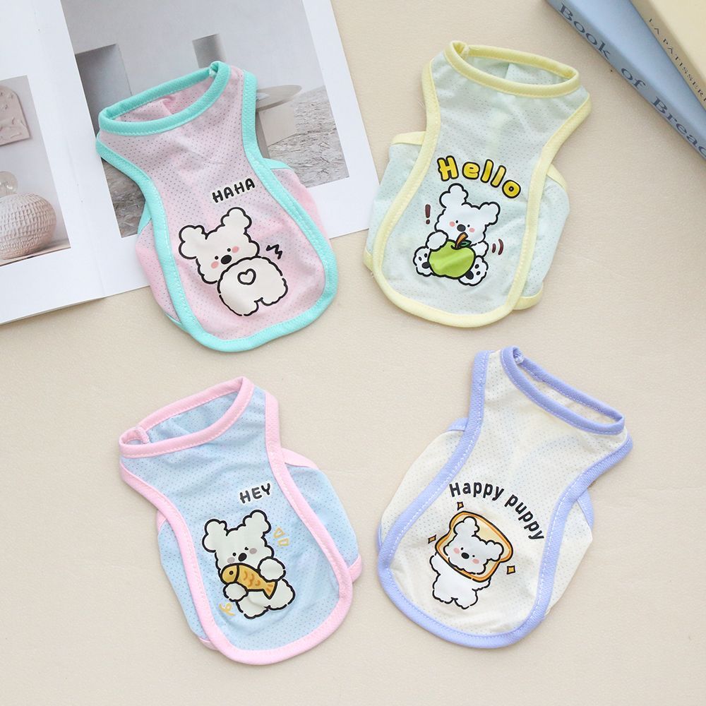 Pakaian anjing peliharaan pakaian hewan peliharaan musim semi dan musim panas beruang teddy rompi hewan peliharaan kaus 24 rompi cinta