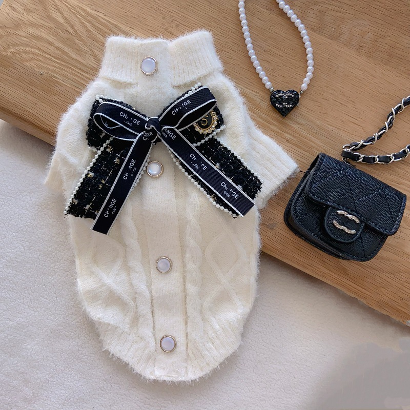 Sweater anjing merek trendi bulu cerpelai lembut gaya channel busur Beruang teddy ember Perancis musim gugur dan musim dingin pakaian hewan peliharaan grosir
