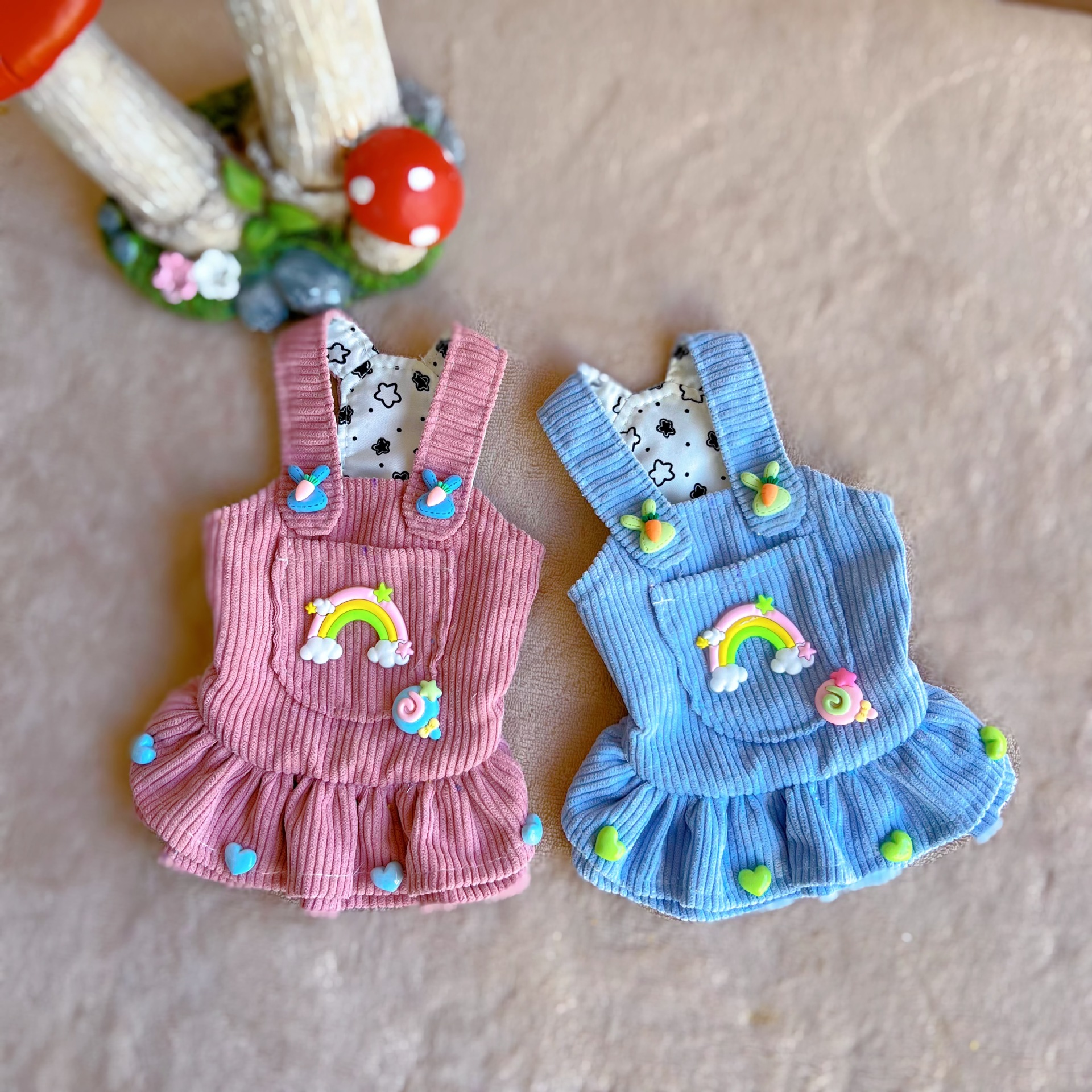 Pakaian anjing peliharaan, rok suspender Denim korduroi semua cocok kucing beruang teddy anjing kecil dan sedang
