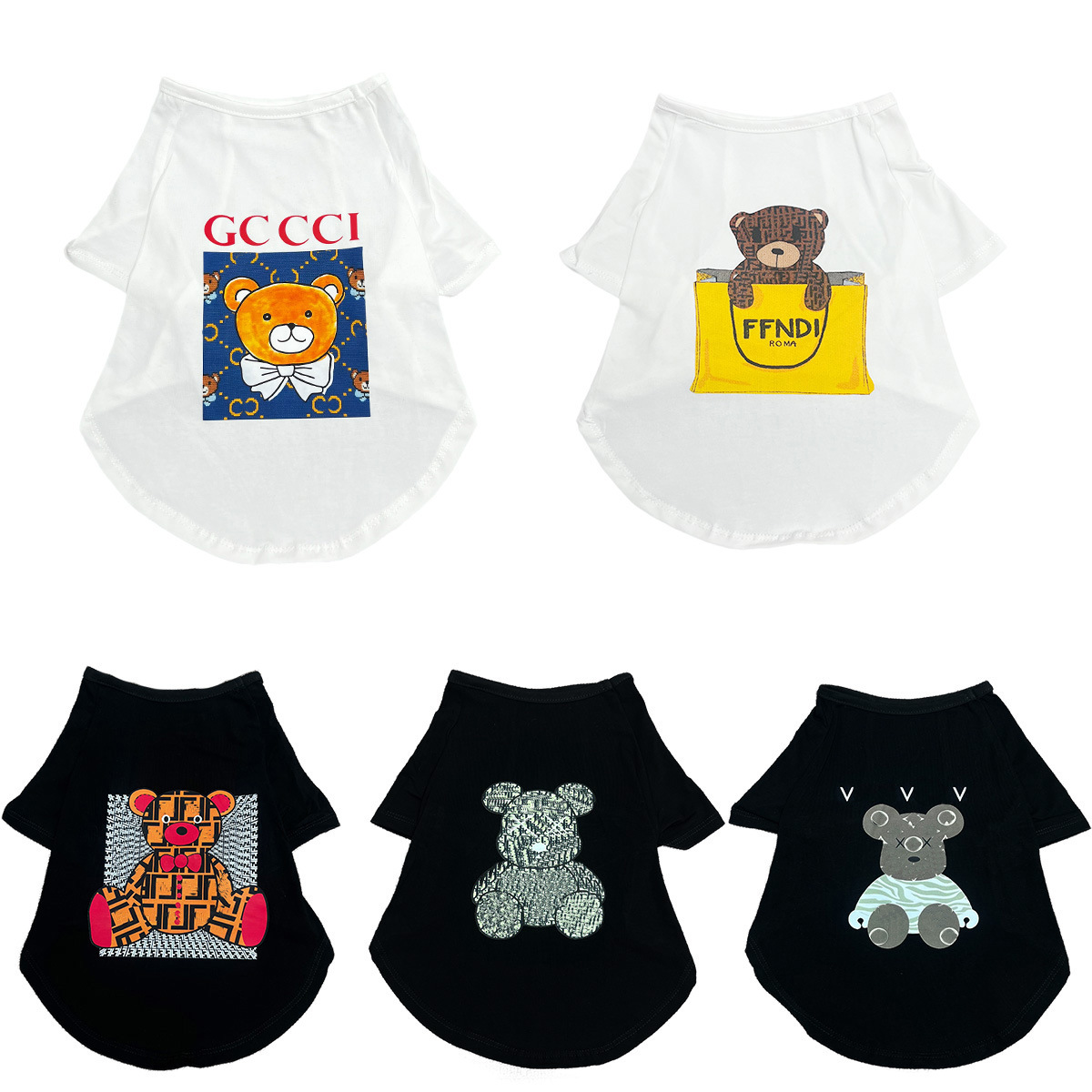 Pakaian anjing tipis musim panas kaus hewan peliharaan lembut basket Halloween leher bulat baju beruang Bomei anjing kecil