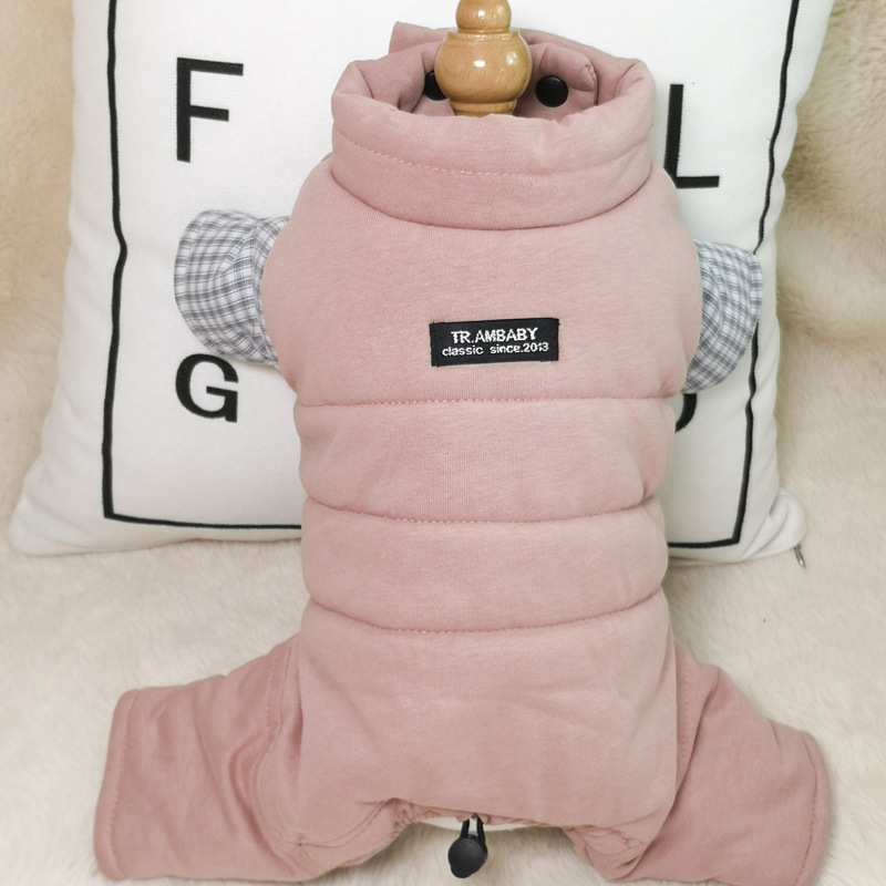 Pakaian anjing baru musim gugur dan musim dingin katun menebal tinggi elastis pakaian hewan peliharaan ember Prancis Teddy anak anjing pakaian berlapis katun grosir