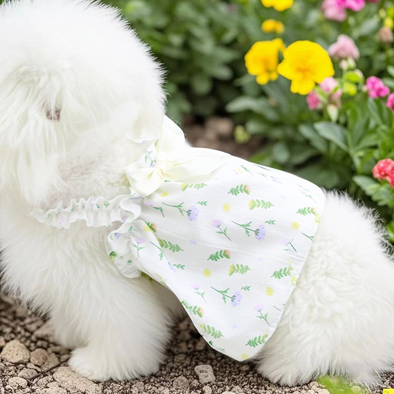 Pakaian Hewan Peliharaan Rok Putri Model Pendek Tali Renda Bunga Model Baru Musim Semi dan Musim Panas