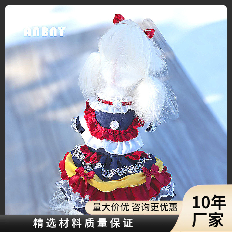 Gaun hewan peliharaan dari pabrik, pakaian hewan peliharaan, gaun anjing kucing bermotif, gaun kartun lucu, gaun putri imut